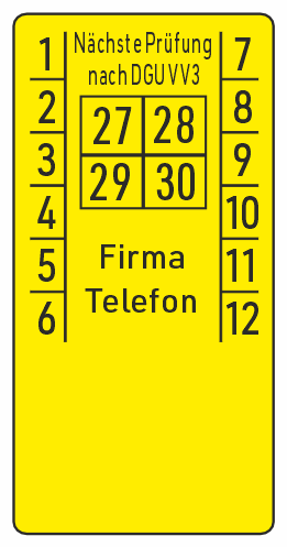 Kabelprüfplakette Nächste Prüfung nach DGUV V3 mit Firmenaufdruck