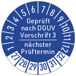 Prüfetikett Geprüft nach DGUV Vorschrift 3 - nächster Prüftermin