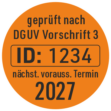 Prüfetiketten mit Werbeaufdruck und fortlaufender Nummerierung.