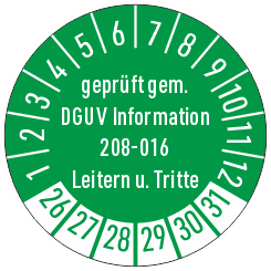 Prüfplaketten Leitern und Tritte - Geprüft gem. DGUV Information 208-016