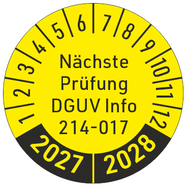 Prüfplakette Nächste Prüfung DGUV Info 214-017