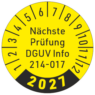 Prüfplakette Nächste Prüfung nach DGUV Info 214-017