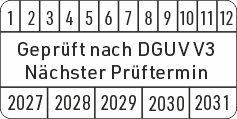 Rechteckige Prüfplakette DGUV Vorschrift 3 - Nächster Prüftermin