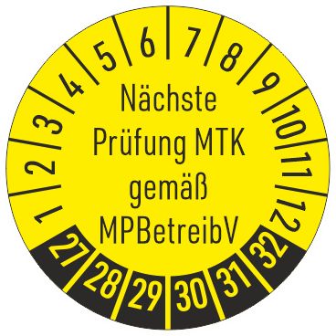 Prüfplakette Nächste Prüfung MTK nach MPBetreibV (Medizinprodukte-Betreiberverordnung)