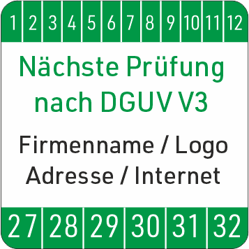 Prüfplaketten DGUV V3 mit Werbung / Logo