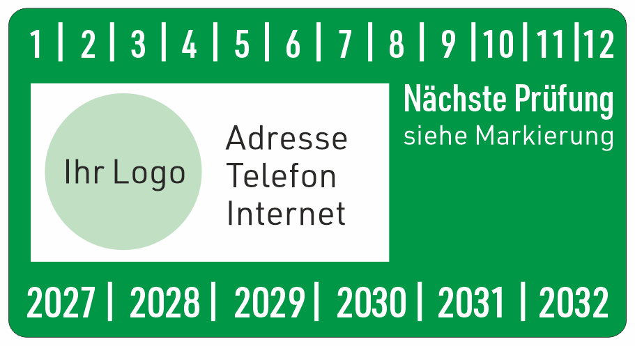 Wartungsplaketten Nächste Prüfung mit Firmeneindruck / Wunschtext